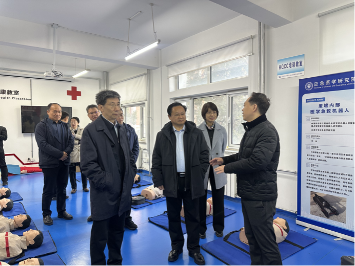 会前与会代表参观了天津大学卫生应急学院,樊毫军院长介绍了学院的学科建设、科研成果、教学体系、特色研究方向以及未来发展规划等。天津大学党委常务副书记雷鸣代表天大向参会领导及专家表示热烈欢迎。她首先介绍了天津大学的悠久历史底蕴和医学学科领域的布局,她强调了应急医学作为新兴交叉学科的重要性,并提到天津大学在该领域已形成的实践优势和特色研究方向。面对自然灾害和突发公共卫生事件的挑战,她表示天津大学愿与各方加强交流合作,共同推进急救与灾难医学发展,提升应急医学救援水平,为保障人民生命安全和身体健康做出贡献。