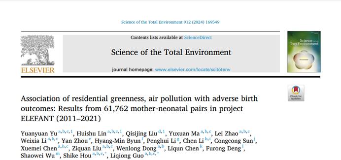 科研速递-应急医学研究院成果揭示绿地暴露与不良妊娠结局的重要关联