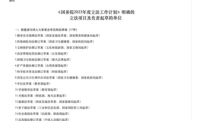 我国于2020年启动了《应对法》的立法工作,经起草、审议等多项环节,现已被国务院列为2023年度立法工作计划,是拟提请全国人大常委会审议的17件法律案之一(国务院办公厅关于印发国务院2023年度立法工作计划的通知,国办发〔2023〕18号)。作为我国公共卫生领域的一项重要立法工作,《应对法》是坚持运用法治思维和法治方式应对处置突发公共卫生事件,强化公共卫生法治的重要保障,是国家治理体系和治理能力现代化的重要体现。