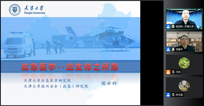 1月21日上午,中华医学会灾难医学分会主委、天津大学应急医学研究院院长侯世科教授上线天津大学“科技赋能,同心抗疫”空中讲堂,带来一场题为“应急医学——应生命之所急”的精彩讲座。本场讲座由天津大学医学部党委书记李振宇主持。二百余位天津大学及兄弟院校、医院、科研院所等相关专业的师生、学者、医务工作者、以及部分天津市中学生及家长线上聆听了讲座。