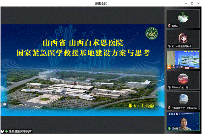 专题一:由武汉大学中南医院周利华教授、山西白求恩医院任晓静教授、北海市人民医院王柏磊教授等分享介绍国家紧急医学救援基地申报及建设情况;