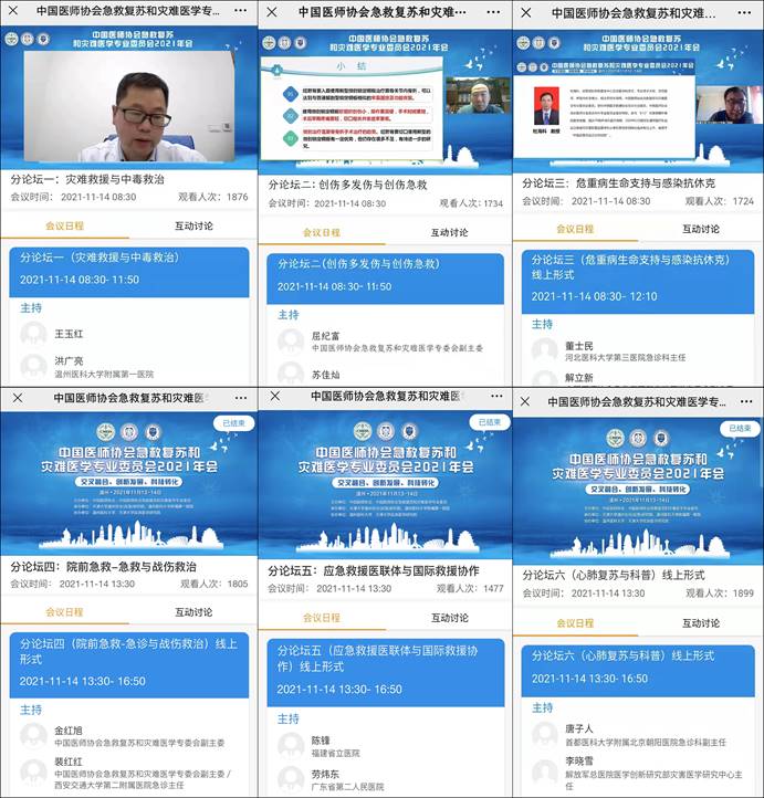 开幕式结束后,中国医学救援协会会长李宗浩,国际休克学会主席姚咏明,温州医科大学附属第一医院副院长卢中秋,天津大学应急医学研究院院长、中华医学会灾难医学分会主委侯世科,应急总医院副院长吴迪,天津大学应急医学研究院常务副院长樊毫军,中国医师协会急救复苏和灾难医学专委会副主委解立新,郑州大学第一附属医院郑东院区急诊科主任兰超,徐州医科大学附属医院急救中心主任许铁,北部战区总医院急诊医学科主任金红旭,广西医科大学第二附属医院急救中心主任赵会民,西安交通大学第二附属医院急诊主任裴红红等81位灾难与急救医学领域专家,分别在主论坛和6个分论坛做了精彩的学术报告,报告涉及新冠防控、应急救援、中毒救治、危重病救治、急诊急救、感染休克、创伤救治、创伤骨科、战伤救治、国际救援和科普教育等十二个专题,为参会人员带来了一场学术盛宴,累计1.8万人在线听课。