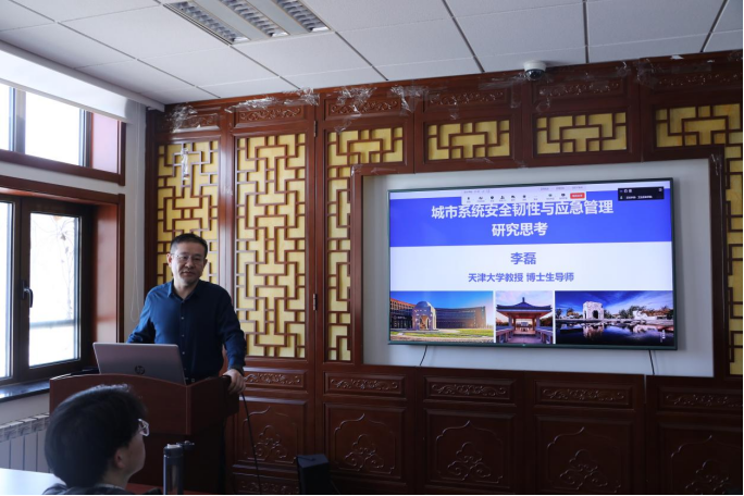 天津大学管理与经济学部英才教授李磊老师,以“城市系统安全韧性与应急管理研究思考”为主题进行学术报告。讲座从可持续城市和城市韧性出发,系统阐释了城市系统安全韧性已然成为保障社会稳定与可持续发展的关键支撑。讲座结合实际案例介绍城市在应对极端天气事件、公共卫生危机等突发事件时的应急方案规划。通过系统梳理城市安全韧性与应急管理的内在逻辑与发展趋势,阐明构建智能、高效的城市风险防控体系的创新路径,以期推动城市安全治理领域的理论创新与应用实践。报告结束后,学院副书记副院长周艳和学院师生与李教授积极互动,并展开热烈讨论。