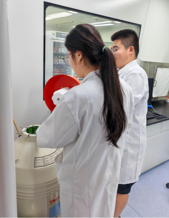2023级硕士生杨嘉凝和赵云龙正在复苏细胞