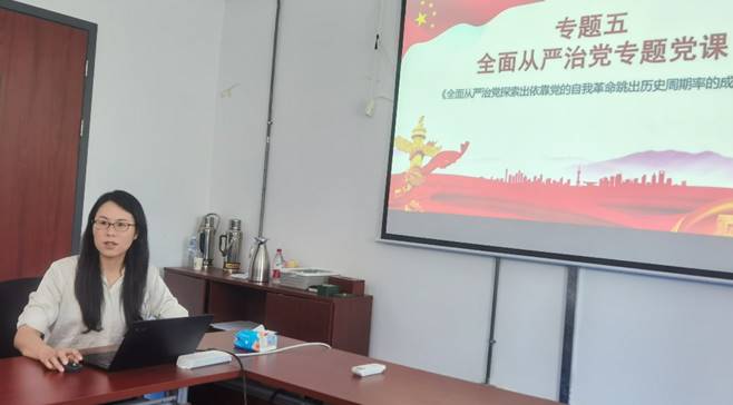 赵艳梅讲授了“全面从严治党”的专题党课,她谈到,全面从严治党永远在路上,党的自我革命永远在路上,这既是对建党治党历史经验的深刻总结,也是对跳出“历史周期率”陷阱的深刻借鉴。新时代全面从严治党凸显了我们党勇于自我革命的鲜明品格、巨大勇气,是党更加自觉、更加成熟的显著标志。我们要坚持严字当头,严守党规党纪,坚持立德树人,以自我革命的勇气着力解决突出问题,持续攻坚克难,不辜负组织的信任和时代的重托。