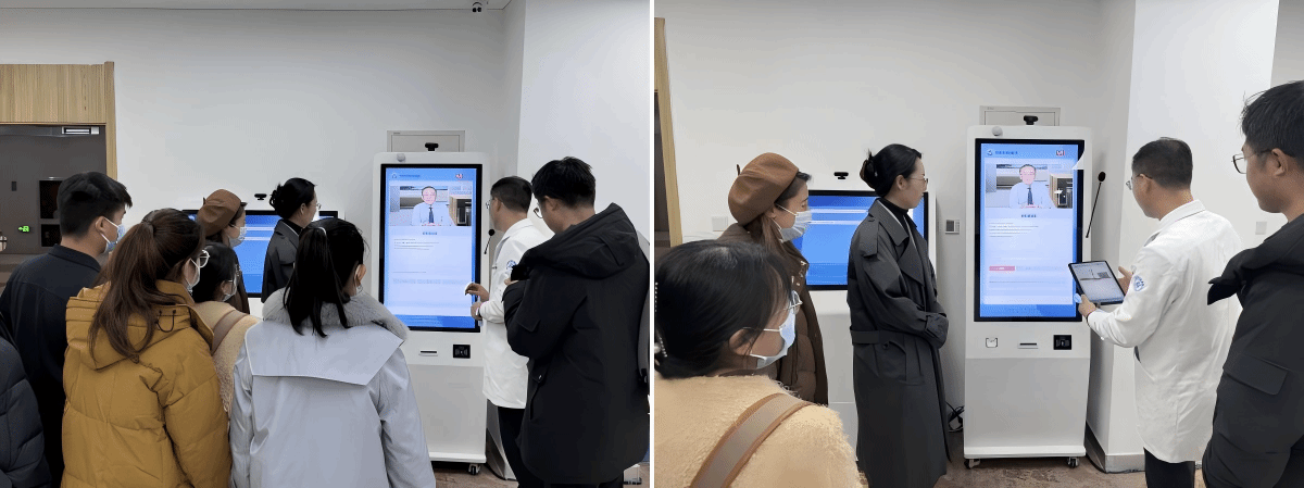 交流环节结束后,师生们走进了海河医院门急诊、胸痛中心与卒中中心现场,沉浸式体验AI 数字医生智能体终端快速采集患者信息,自动完成初步分诊与风险分级,以及智能监测设备实时传输患者心电数据,联动 AI 模型自动识别异常波形,为急性心梗患者争取 “黄金救治时间” 的实际应用。