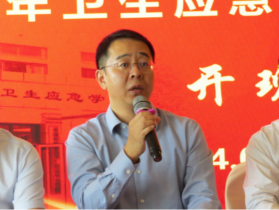 庞博代表天津大学卫生应急学院致欢迎辞,详细介绍了天津大学医科规划和发展,以及应急医学学科发展历程和取得的成果,强调了此次培训班的意义。他指出,卫生应急工作是国家公共安全的重要组成部分,本次培训通过系统的理论学习和实操训练,旨在帮助学员们掌握应急救援的新技术和理念,提升在突发事件中的快速响应能力。