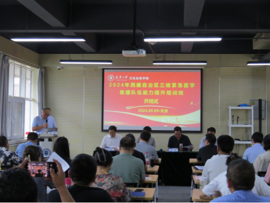 在9月9日的开班仪式上,西藏自治区卫生健康委党组成员、副主任郭珞,国家卫生健康委员会医疗应急司医疗应急指导处二级主任科员刘学星、西藏自治区卫生健康委员会医疗应急处处长解东方、天津大学卫生应急学院党委书记庞博、院长樊毫军共同出席。范斌主持了此次开班仪式。