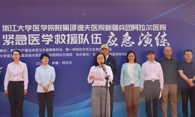 第一师副师长肖晨曦在现场全程观摩演练,并作总结讲话。她指出,组建兵团南疆国家紧急医学救援队,是师市党委深入贯彻落实习近平总书记关于卫生应急工作重要精神,提升应对重特大突发事件紧急医学救援能力,守护好人民群众生命健康的重要举措,对于提高区域公共卫生事件应急处置水平具有重要意义。她希望浙大邵逸夫阿拉尔医院充分发挥专业职能优势,借助天津大学应急研究院等优质资源,不断推进国家紧急医学救援队伍建设,扎实做好培训演练工作,为保障人民群众生命安全和身体健康提供优质高效服务,在重大公共卫生事件中交出更多满意答卷。