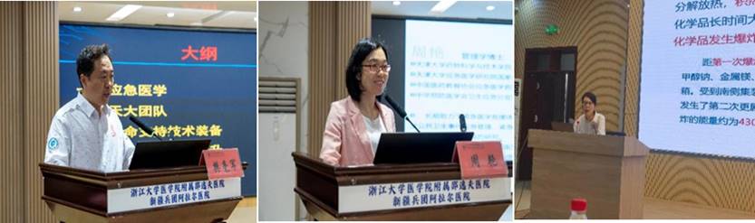在理论授课环节,天津大学应急医学研究院院长樊毫军、副院长赵艳梅,药物科学与技术学院副院长、天津市灾难医学技术重点实验室副主任周艳,分别为参训队员进行了精彩的授课。
