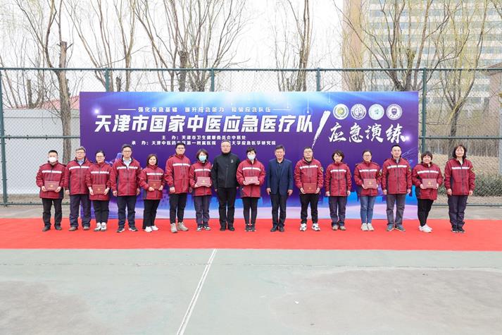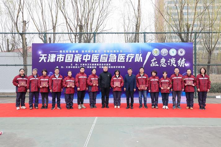 19日9:30演练正式开始,天津市卫生健康委员会中医处调研员郭翰林,天津中医药大学第一附属医院党委书记张艳军、副院长刘新桥、指导专家天津大学应急医学研究院范斌副院长等出席了演练开幕式。来自我市6家三级中医、中西医结合医院共60名队员参加了此次演练。