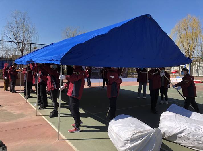 开班仪式后,由培训中心老师对演练脚本进行详细讲解,结合全体队员专业进行分组,并根据演练过程中可能涉及到的现场应急救治技术(如通气、止血、包扎、固定、搬运)进行现场培训教学,并在演练现场进行了帐篷搭建、设备布置等工作。