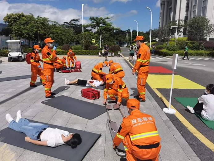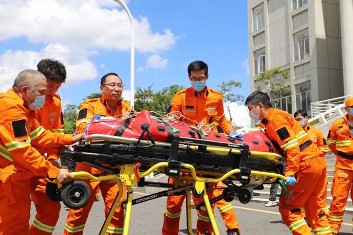本次演练由天津大学应急医学研究院联合深圳大学总医院、深圳市东部通用航空有限公司、广东医通软件有限公司、中国移动深圳分公司、深圳迈瑞医疗公司、深圳市天空汽车网络有限公司承办,在天津大学应急医学研究院副院长范斌带领的团队指导下,共21名救援队队员参演了首次5G+ECMO大湾区航空医疗应急救援演练!