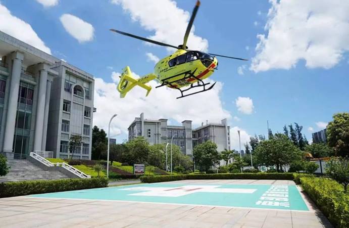 8月7日上午9:00,在深圳大学总医院上空,盘旋出现了一架应急救援直升机。这个场景是由天津大学应急医学研究院与深圳大学总医院急诊科组织的一场大规模5G+ECMO航空医疗应急救援演练。