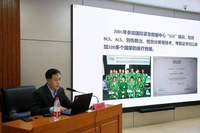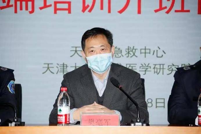 樊毫军在致辞中首先对给予本次培训工作大力支持的部门和领导表示衷心的感谢,并对参加此次培训的同志们表示真诚的欢迎。他指出,天津大学灾难医学研究院高度重视本次培训,精心布署和安排拟制了培训计划与课程,通过与市急救中心多次沟通,确定最终的培训方案。在教学准备过程中,天津市急救中心、天津医科大学总医院、武警特色医学中心等单位都给予大力支持,确保了此次培训班的顺利举办。