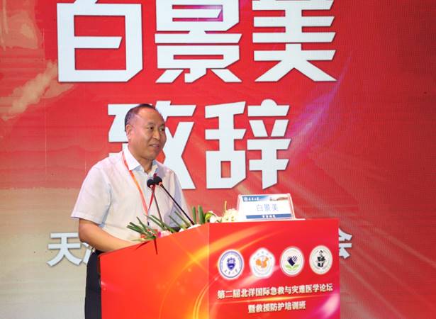 白景美代表天津市科学技术协会对论坛的顺利召开表示热烈的祝贺,他肯定了侯世科团队积极参加国家防灾减灾方面的成果及开展医学科普活动、提高公众救援意识的社会服务工作以及团队为提高天津市在突发事件下应急医学救援能力作出的贡献,他表示市科协将一如既往的全力帮助支持天津大学灾难医学学科建设。