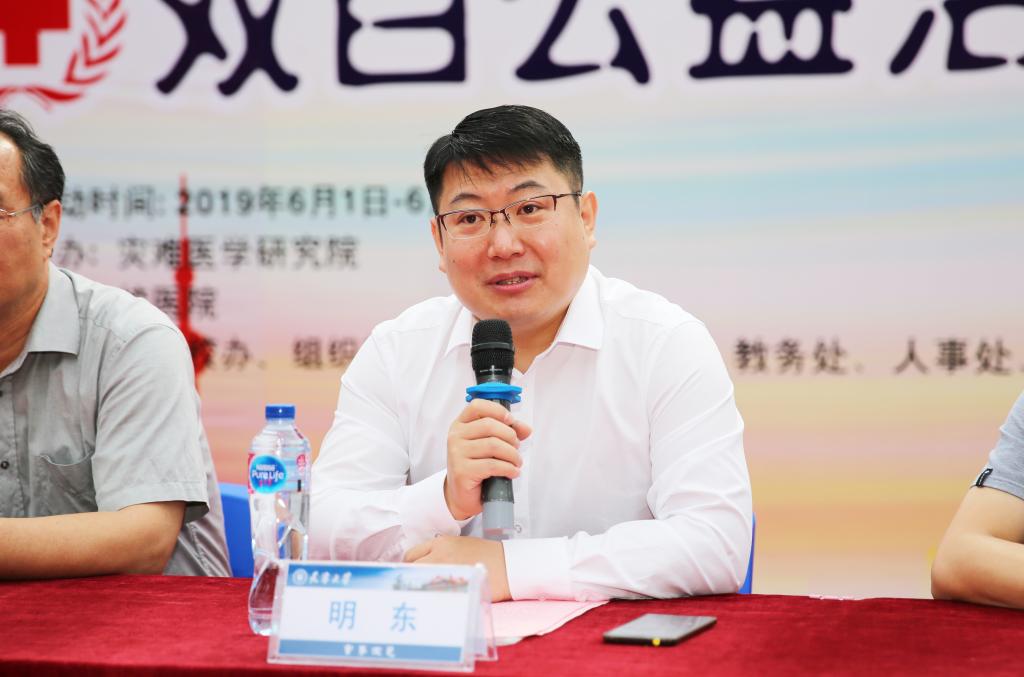 明东代表医科办与医学部,对机关各部门和校医院为开展此项活动给予的支持表示衷心的感谢。他表示,在心脏骤停的多发季,灾难医学研究院举办这次活动,旨在传播人道、博爱、奉献的红十字精神,希望大家充分利用这次学习机会,掌握技能,传播爱心,为健康中国战略贡献天大力量。