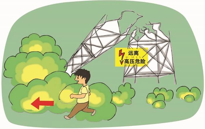 ● 发现高压线铁塔倾斜,电线低垂或断折时,要远离避险,不可触摸或接近,防止触电。