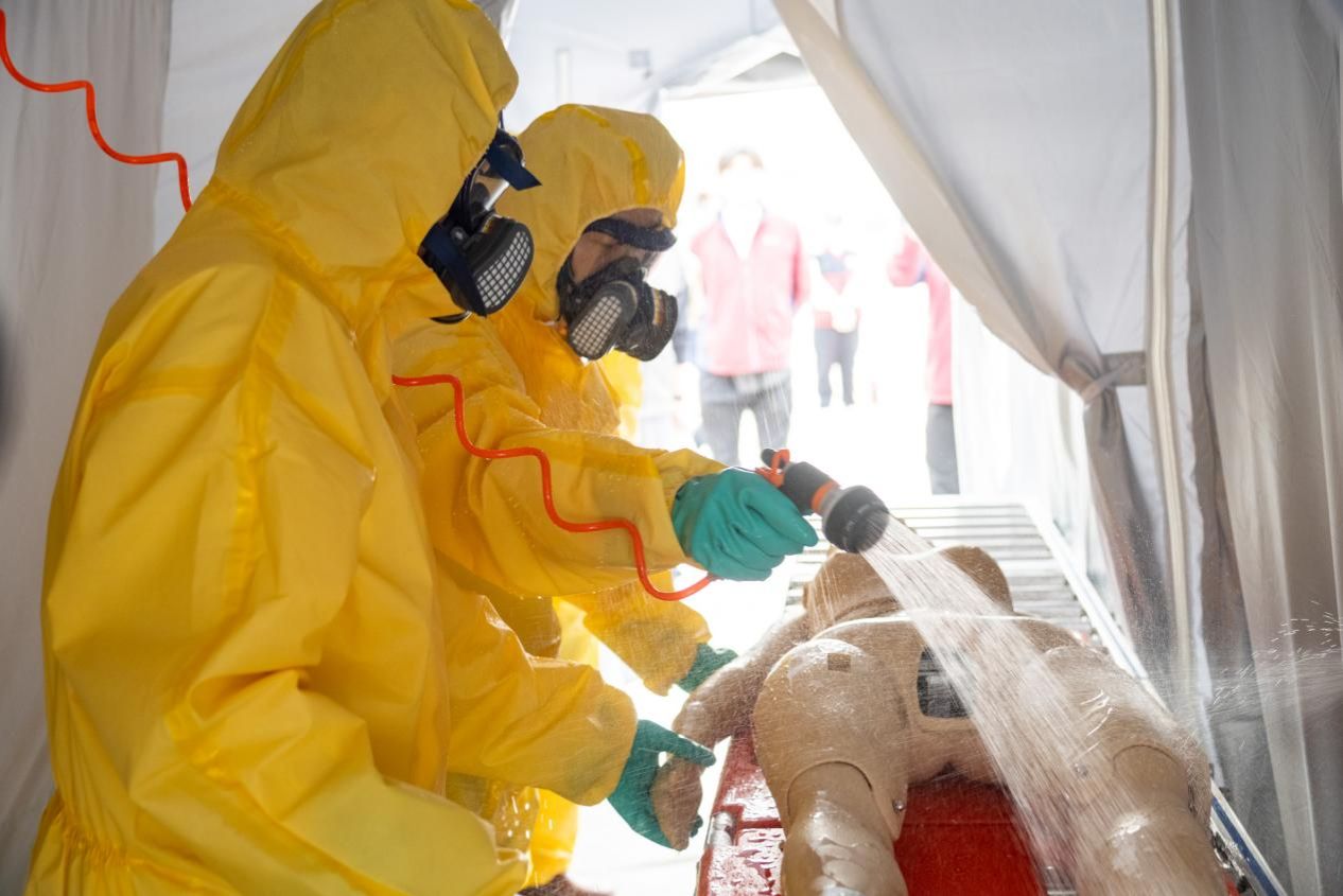 此次培训采用“理论教学+实操训练+实战演练”相结合的方式,重点围绕通讯指挥、毒物危害识别、现场检测、个体防护、洗消去污、医疗救治,以及应急响应与处置流程等环节展开训练,全面覆盖中毒事件卫生应急处置的各关键节点。课程期间,学员在专家及技术团队指导下完成全流程分组操作,演练前,范斌副院长带领培训中心团队通过脚本解读、桌面推演和4次实操预演使队员们熟悉职责分工、掌握装备使用方法和现场处置流程。