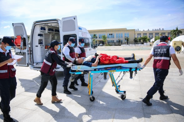 2016年末,在海南省卫健委的指导下,由海南医学院第一附属医具体建设的国家紧急医学救援队(海南)开始组建工作,并于2019年正式通过国家卫健委验收。队伍现有88名队员,17辆特种车辆。车载医院+帐篷医院全部展开,可达8000㎡,展开后,共有90张普通病床,10张重症病床,可以同时开展3台手术。参加过援鄂抗疫、津巴布韦、刚果(金)撤侨行动、南海巡航医疗保障等任务。
