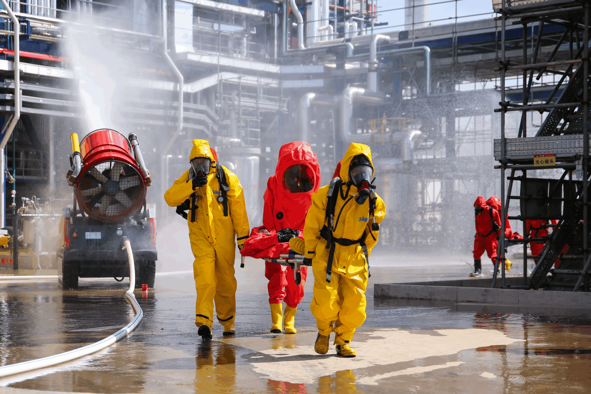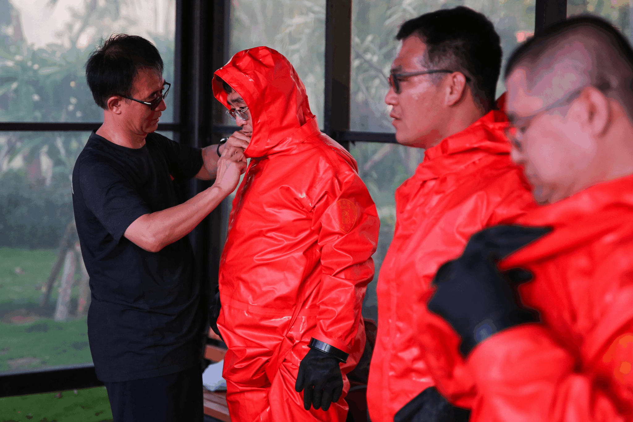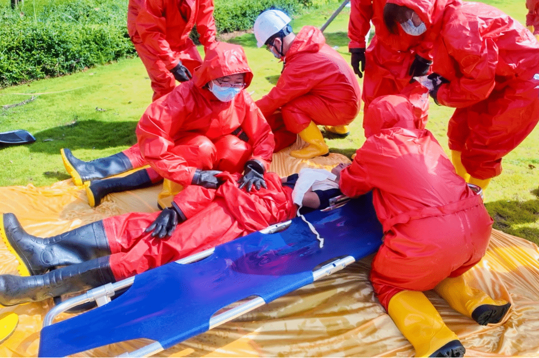 在热带化工厂高温(高于38℃)、高湿(大于90%)极端环境下,演练全面验证了热区、温区、冷区多区域医学救援人员协同防护的适应性。通过优化防化服穿脱流程和医疗防护装备性能,确保各区域医疗队员在复杂条件下安全作业,实现跨区医疗接力的连续性和安全性。