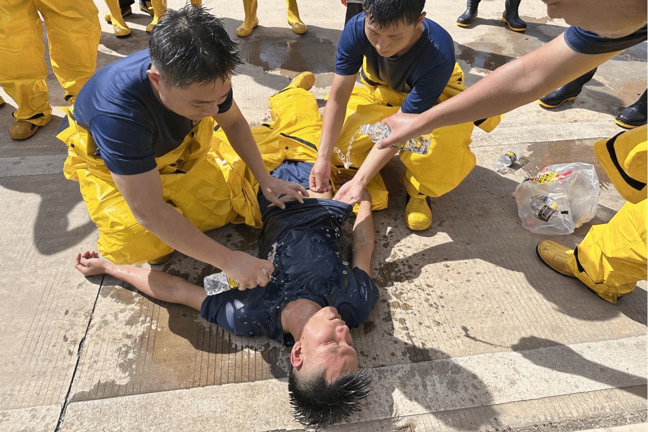 此次演练突出“极端性、专业性、实战性”,聚焦“生命至上、医学前移”核心理念,围绕重大安全生产事故现场伤员有效救治的问题导向,以炼化厂有害气体泄漏引发爆炸这一极端环境场景为背景,针对高温高湿极端环境下的医学救援短板,靶向设计了“热区泄漏源封堵和污染控制”“温区快速检伤分类和紧急救治”“冷区精准诊断和手术干预” 3个专题、10余个关键科目,重点演练国家应急医学救援队在复杂、危险环境下的快速响应、无缝衔接与高效协同能力,特别是危化品沾染伤员的标准化洗消流程和高效安全转运机制,探索形成“先封控、再救治、再转运”的应急医学救援闭环模式。