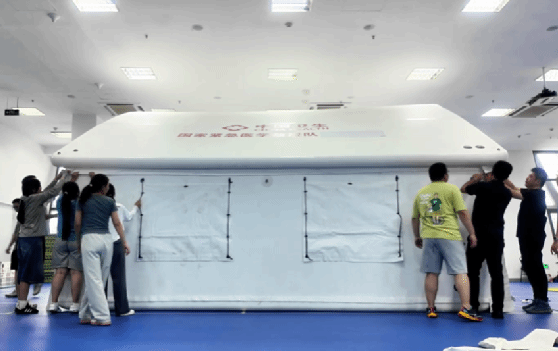 应急救援现场帐篷搭建训练要求学员在规定时间内完成医疗帐篷的搭建,提升野外临时医疗点快速部署能力。