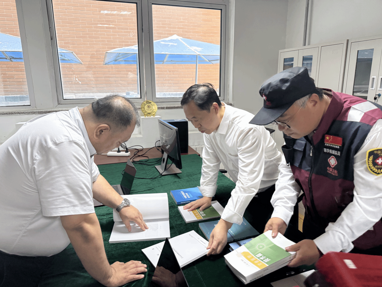 评估专家组深入现场开展核查工作。在学院北侧、24号教学楼二楼等区域,专家们先后对救援队列队风貌、医疗应急办运行机制、装备库房及个人携行装备的配置与管理、培训演练工作、应急响应流程等进行了细致检查。通过实地查看、现场问询等方式,专家们对救援队展现出的规范化建设水平和专业素养给予高度认可。在学院实验室,专家们重点查看了实验室平台、科研成果及成果转化情况,专家们认为学院科研工作和成果为救援队实战能力提升提供了有力的技术支撑。