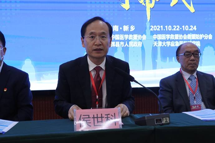 侯世科代表中华医学会灾难医学分会、天津大学应急医学研究院对新乡市人民政府的大力支持表示衷心的感谢。他简要介绍了天津大学应急医学学科建设情况,他指出,天津大学愿与各单位一道,推进我国灾难与急救医学事业不断发展,提升应急医学救援水平,共同为人类的生命健康保驾护航。