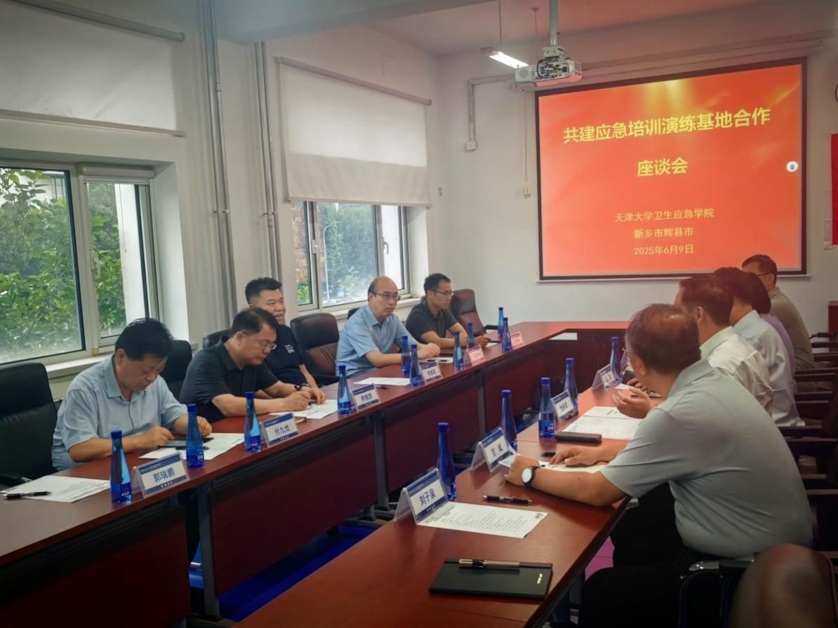 6月9日下午,辉县市委书记李继游带队来访天津大学卫生应急学院,就应急实训基地建设等合作事宜开展深入交流。新乡国有资本运营集团有限公司党委委员、总经理李智军,新乡南太行旅游有限公司党委书记、董事长付九忱等一同参加交流活动,天津大学卫生应急学院党委书记庞博以及院长樊毫军参加此次座谈。