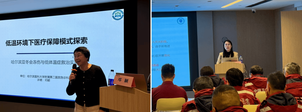 培训邀请了哈尔滨医科大学附属二院、中国医科大学附属第一医院、黑龙江省蓝天救援协调中心等相关专家开展专题授课。培训以实战化为核心导向,内容涵盖理论、管理、案例、团队、实操五大模块。模拟高寒地区自然灾害、突发公共卫生事件等救援场景,重点开展快速远程投送、现场伤情评估、极端环境急救等科目培训。培训还开展了高仿真严寒冰雪灾害救援全流程桌面推演,对现场评估、伤员搜救、保温复温、创伤处置、心理支持、后勤保障等各环节进行沉浸式推演,重点帮助队员掌握寒区、雪域特殊情境下的生命支持与疾病防控理论,研讨恶劣条件下的体系化指挥、跨域协同与资源精准投送,总结提升复杂局势下的研判与决策能力,提高团队协同作战能力和凝聚团结认知。